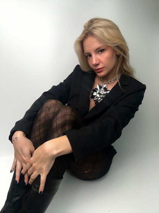 Flower 3D Printed Chrome Silver Chain Necklace – Futuristic Chunky Collar, Cyberpunk Jewelry